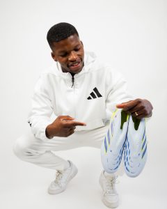 Florentino protagonizou um dia especial de gravações e produção de conteúdo ao apresentar sua parceria com a Adidas. Em um cenário que mistura performance e estilo, Florentino revelou ao público as chuteiras personalizadas “TINO PREDATOR”, uma releitura exclusiva da clássica linha Adidas Predator, conhecida mundialmente por sua precisão e controle dentro de campo.